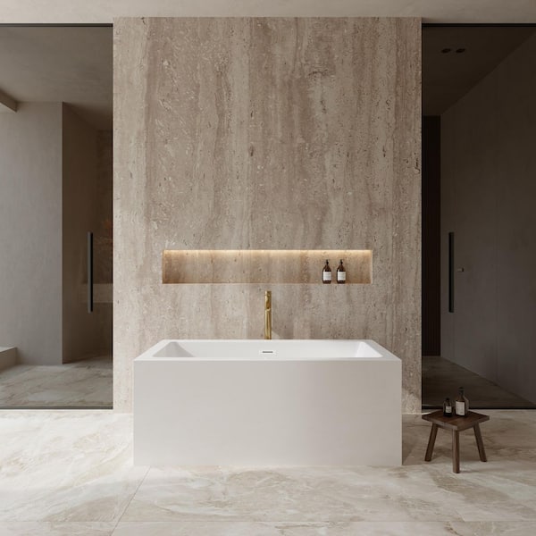 Melody 59.5 in. Acrylic Flatbottom Bathtub in White with Shiny White Trim and Brushed Gold Faucet