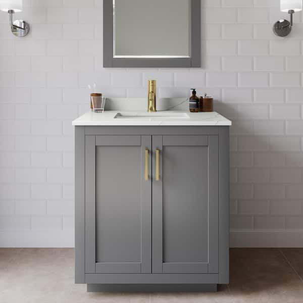 Miranda 30 in. W x 22 in. D x 33.75 in. H Single Bath Vanity in Dark Gray with Giotto Quartz Top and 24 in. Mirror