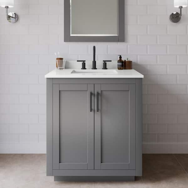 Miranda 30 in. W x 22 in. D x 33.75 in. H Single Bath Vanity in Dark Gray with White Quartz Top