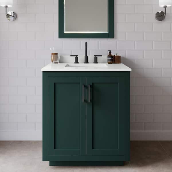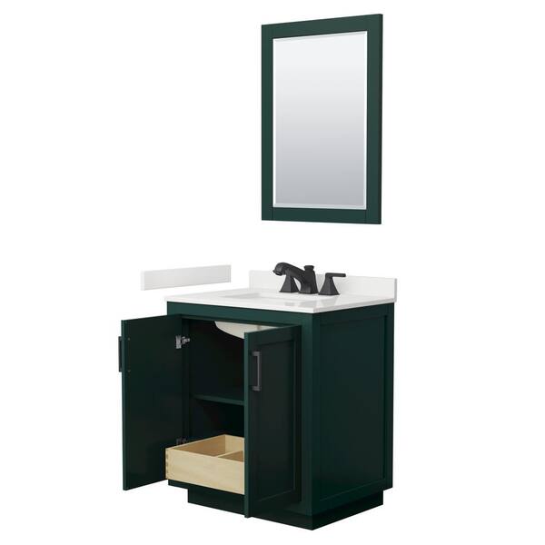 Miranda 30 in. W x 22 in. D x 33.75 in. H Single Bath Vanity in Green with White Quartz Top and 24 in. Mirror