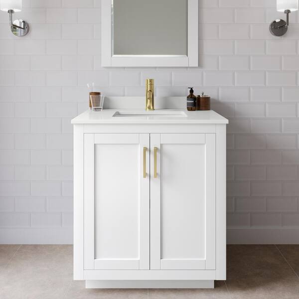Miranda 30 in. W x 22 in. D x 33.75 in. H Single Bath Vanity in White with White Quartz Top and 24 in. Mirror