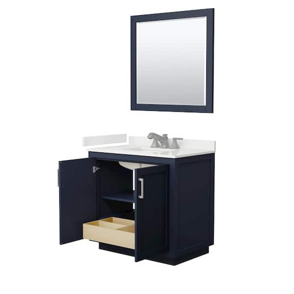 Miranda 36 in. W x 22 in. D x 33.75 in. H Single Bath Vanity in Dark Blue with White Quartz Top and 34 in. Mirror