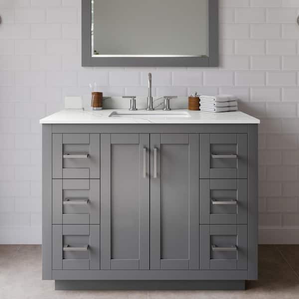 Miranda 42 in. W x 22 in. D x 33.75 in. H Single Bath Vanity in Dark Gray with Giotto Quartz Top and 34 in. Mirror