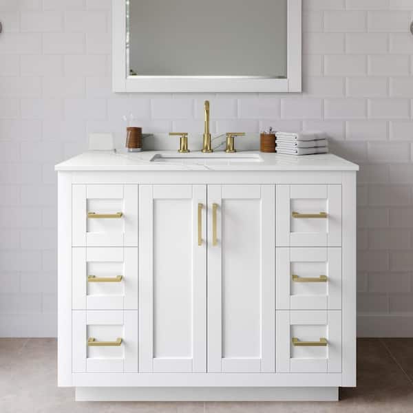 Miranda 42 in. W x 22 in. D x 33.75 in. H Single Bath Vanity in White with Giotto Quartz Top