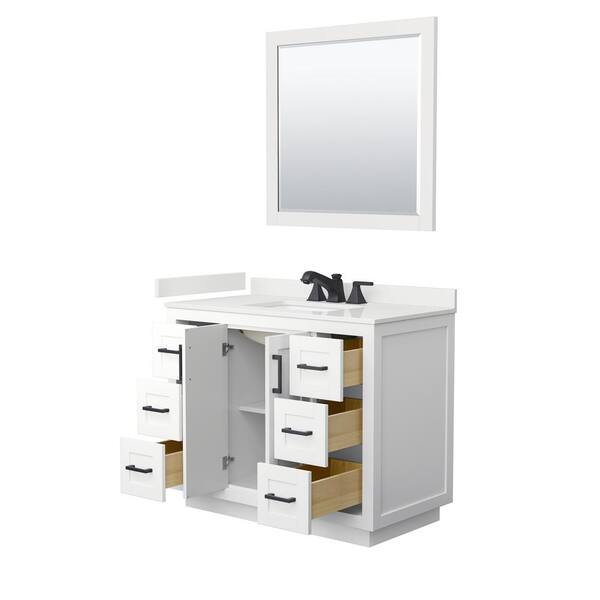 Miranda 42 in. W x 22 in. D x 33.75 in. H Single Bath Vanity in White with White Quartz Top and 34 in. Mirror