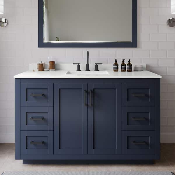 Miranda 54 in. W x 22 in. D x 33.75 in. H Single Bath Vanity in Dark Blue with White Quartz Top