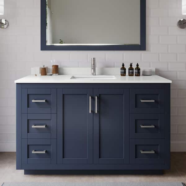 Miranda 54 in. W x 22 in. D x 33.75 in. H Single Bath Vanity in Dark Blue with White Quartz Top and 46 in. Mirror