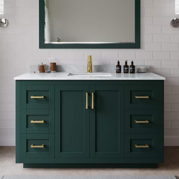 Miranda 54 in. W x 22 in. D x 33.75 in. H Single Bath Vanity in Green with White Carrara Marble Top
