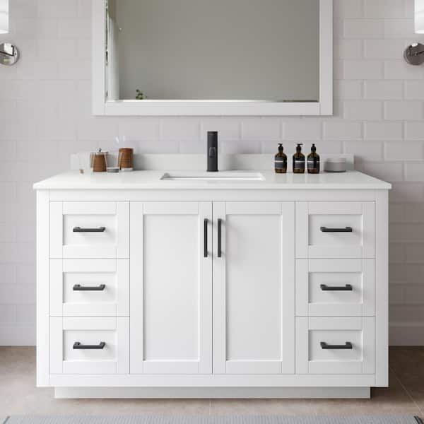 Miranda 54 in. W x 22 in. D x 33.75 in. H Single Bath Vanity in White with White Quartz Top and 46 in. Mirror