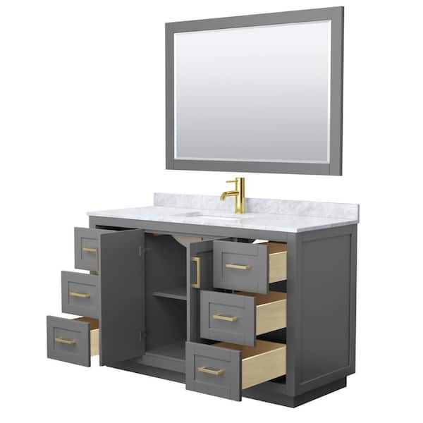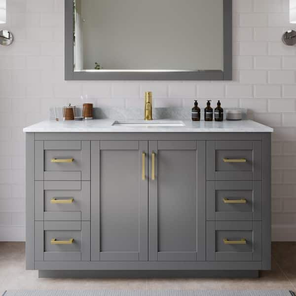 Miranda 54 in. W x 22 in. D x 33.75 in. H Single Sink Bath Vanity in Dark Gray with White Carrara Marble Top and Mirror