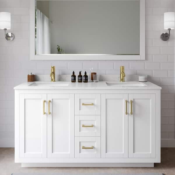 Miranda 60 in. W Double Bath Vanity in White with Cultured Marble Vanity Top in Light-Vein Carrara with White Basins