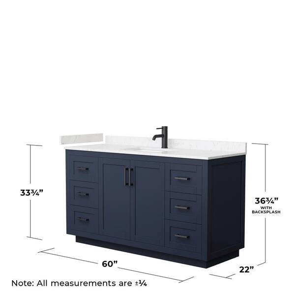 Miranda 60 in. W Single Bath Vanity in Dark Blue with Cultured Marble Vanity Top in Light-Vein Carrara with White Basin