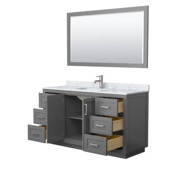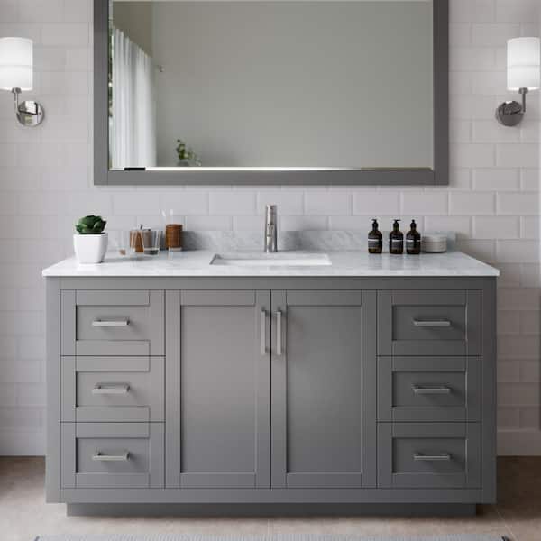 Miranda 60 in. W Single Bath Vanity in Dark Gray with Marble Vanity Top in White Carrara with White Basin and Mirror