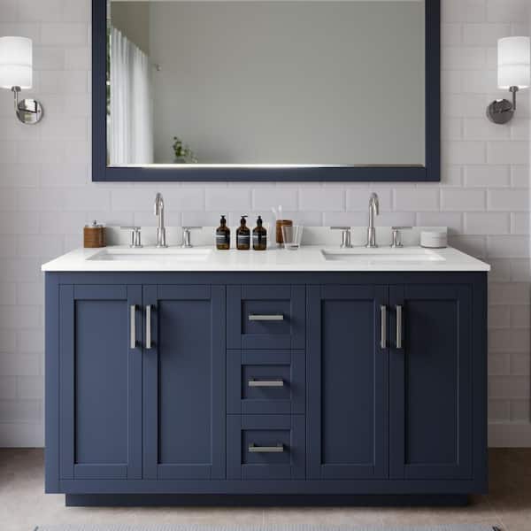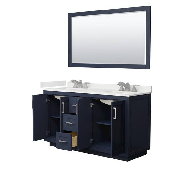 Miranda 60 in. W x 22 in. D x 33.75 in. H Double Bath Vanity in Dark Blue with White Quartz Top and 58 in. Mirror