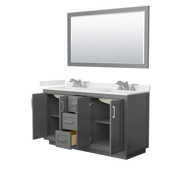 Miranda 60 in. W x 22 in. D x 33.75 in. H Double Bath Vanity in Dark Gray with White Quartz Top and 58 in. Mirror