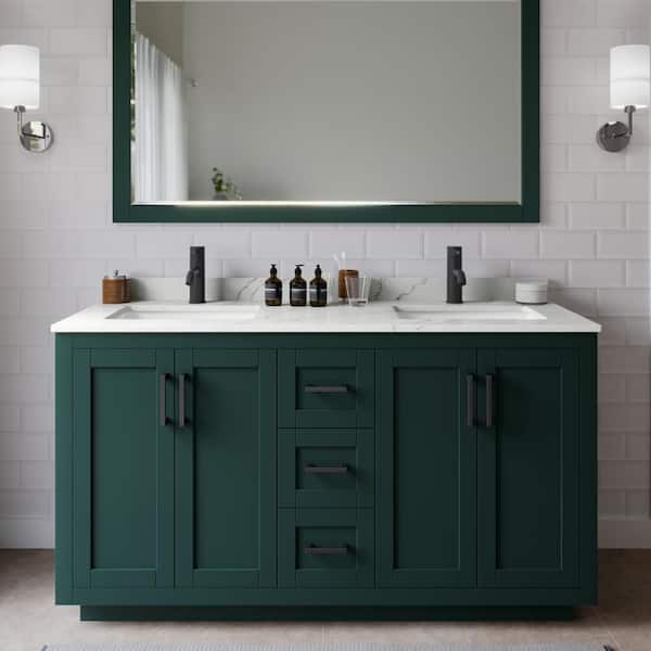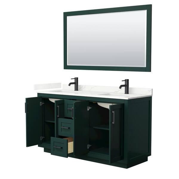 Miranda 60 in. W x 22 in. D x 33.75 in. H Double Bath Vanity in Green with Giotto Quartz Top and 58 in. Mirror