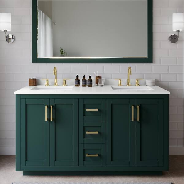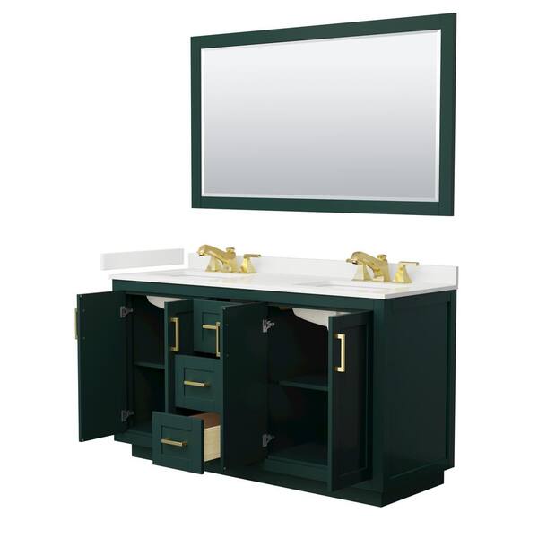 Miranda 60 in. W x 22 in. D x 33.75 in. H Double Bath Vanity in Green with White Quartz Top and 58 in. Mirror