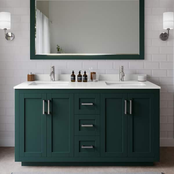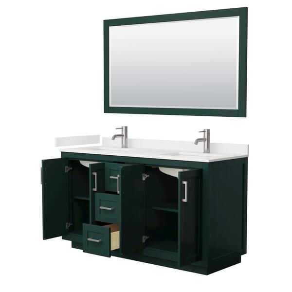 Miranda 60 in. W x 22 in. D x 33.75 in. H Double Bath Vanity in Green with White Quartz Top and 58 in. Mirror