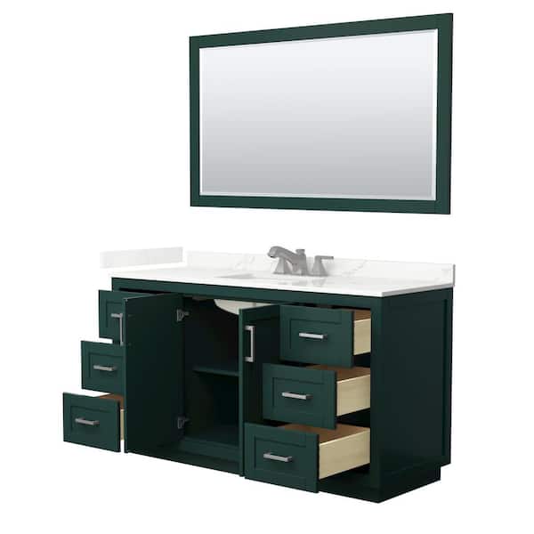 Miranda 60 in. W x 22 in. D x 33.75 in. H Single Bath Vanity in Green with Giotto Quartz Top and 58 in. Mirror