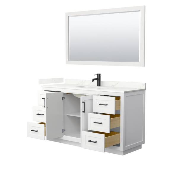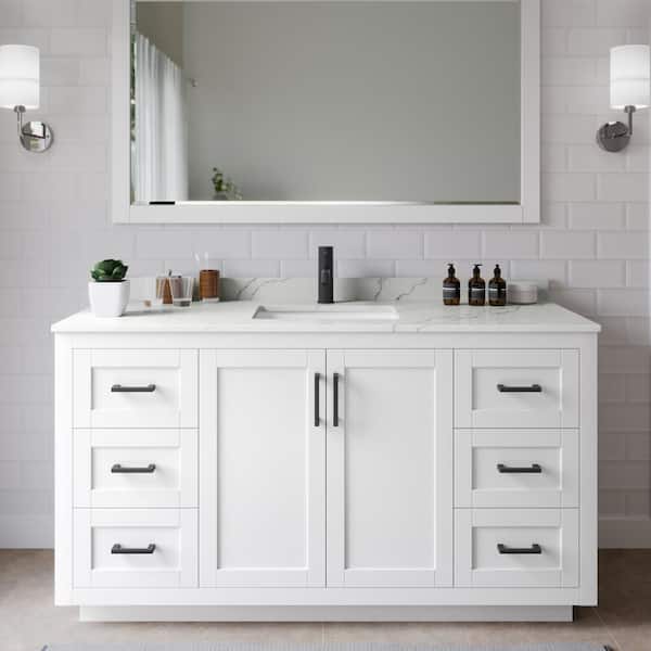 Miranda 60 in. W x 22 in. D x 33.75 in. H Single Bath Vanity in White with Giotto Quartz Top and 58 in. Mirror