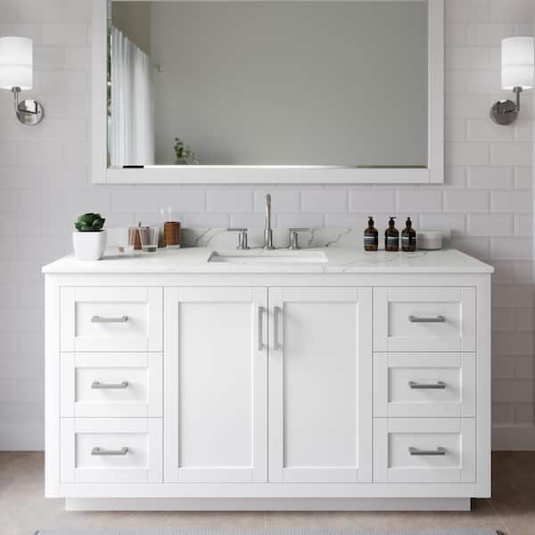 Miranda 60 in. W x 22 in. D x 33.75 in. H Single Bath Vanity in White with Giotto Quartz Top and 58 in. Mirror