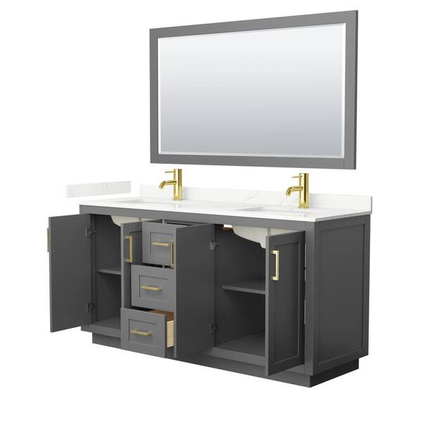 Miranda 66 in. W x 22 in. D x 33.75 in. H Double Bath Vanity in Dark Gray with Giotto Quartz Top and 58 in. Mirror