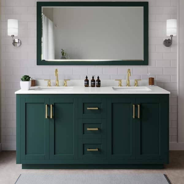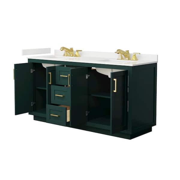 Miranda 66 in. W x 22 in. D x 33.75 in. H Double Bath Vanity in Green with White Quartz Top