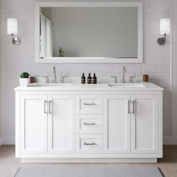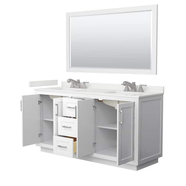 Miranda 66 in. W x 22 in. D x 33.75 in. H Double Bath Vanity in White with White Quartz Top and 58 in. Mirror