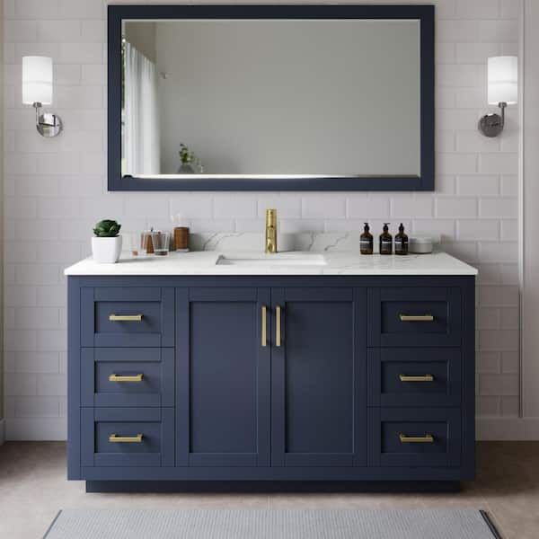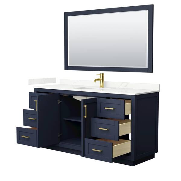 Miranda 66 in. W x 22 in. D x 33.75 in. H Single Bath Vanity in Dark Blue with Giotto Quartz Top and 58 in. Mirror