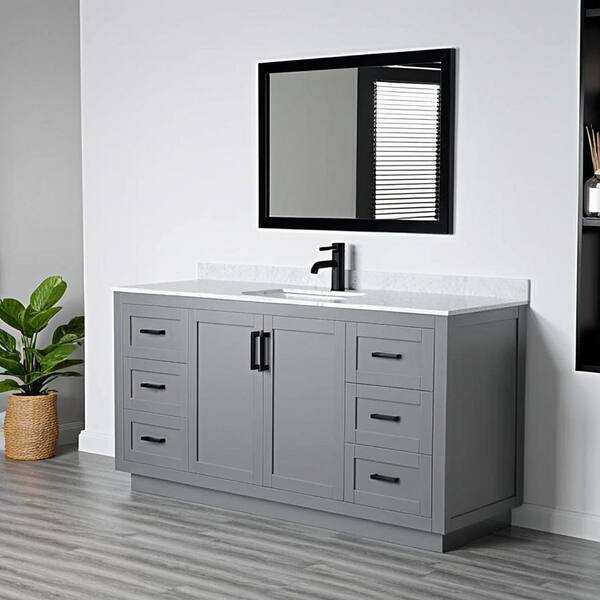 Miranda 66 in. W x 22 in. D x 33.75 in. H Single Bath Vanity in Dark Gray with Carrara Cultured Marble Top