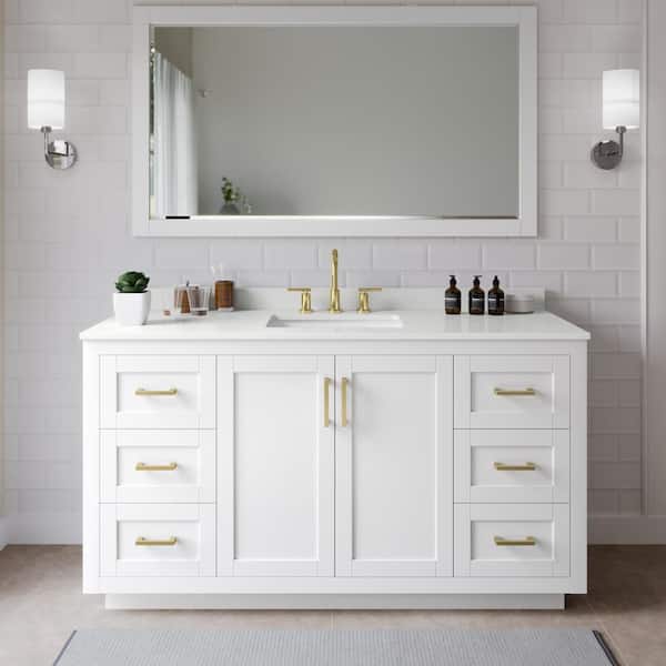Miranda 66 in. W x 22 in. D x 33.75 in. H Single Bath Vanity in White with White Quartz Top and 58 in. Mirror