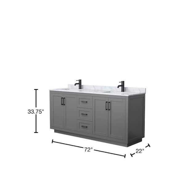 Miranda 72 in. W Double Bath Vanity in Dark Gray with Marble Vanity Top in White Carrara with White Basins