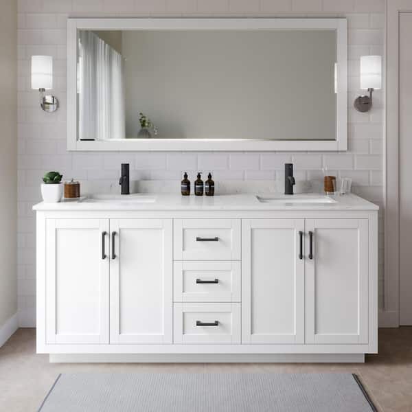 Miranda 72 in. W Double Bath Vanity in White with Cultured Marble Vanity Top in LV Carrara with White Basins and Mirror