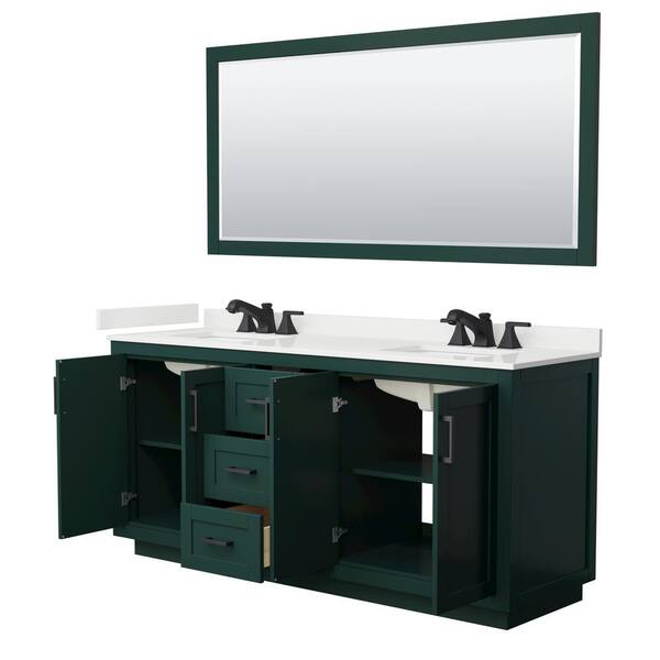 Miranda 72 in. W x 22 in. D x 33.75 in. H Double Bath Vanity in Green with White Quartz Top and 70 in. Mirror