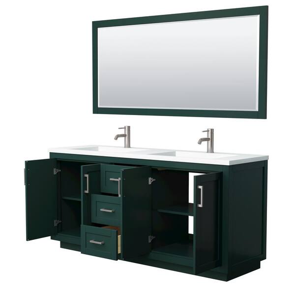 Miranda 72 in. W x 22 in. D x 34.25 in. H Double Sink Bath Vanity in Green with Matte White Solid Surface Top and Mirror