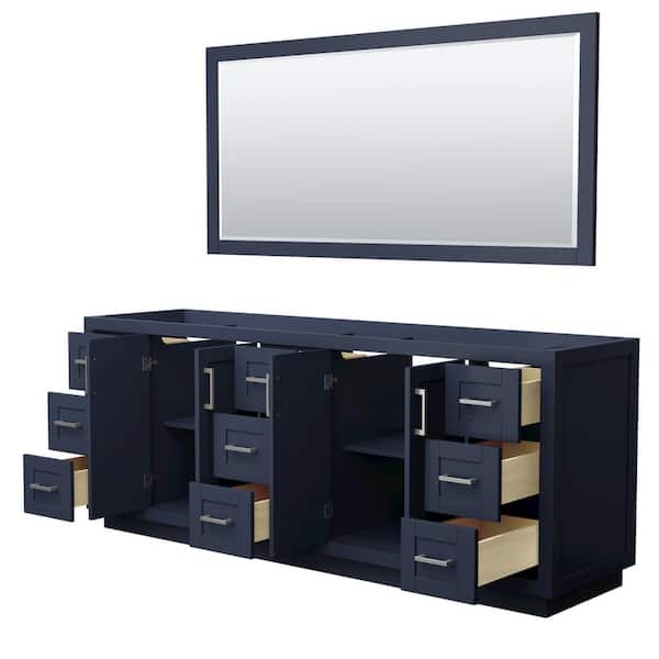 Miranda 83.25 in. W x 21.75 in. D x 33 in. H Double Sink Bath Vanity Cabinet without Top in Dark Blue with 70 in. Mirror