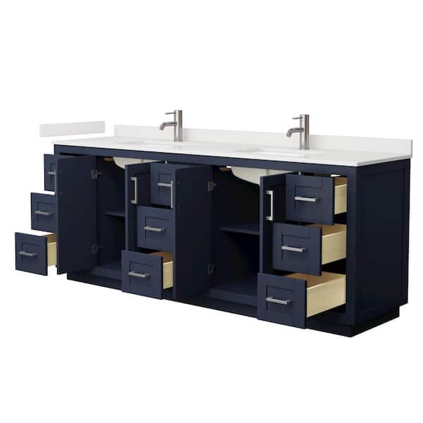 Miranda 84 in. W x 22 in. D x 33.75 in. H Double Bath Vanity in Dark Blue with White Quartz Top