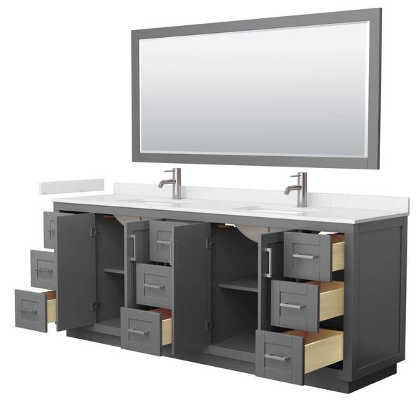 Miranda 84 in. W x 22 in. D x 33.75 in. H Double Sink Bath Vanity in Dark Gray with Carrara Cultured Marble Top & Mirror