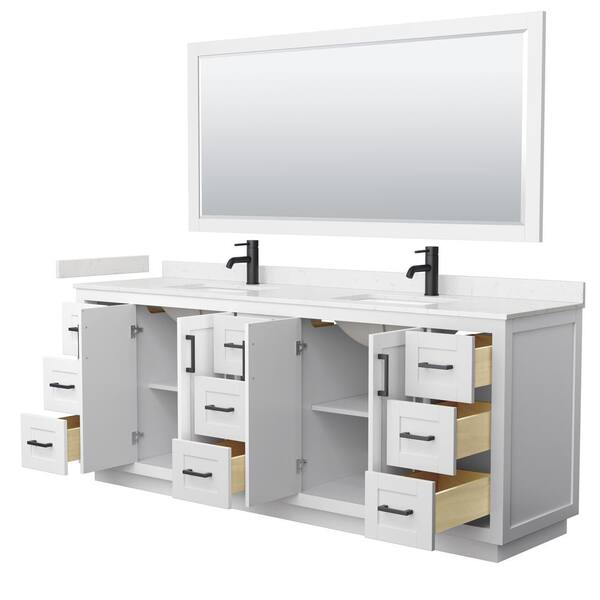 Miranda 84 in. W x 22 in. D x 33.75 in. H Double Sink Bath Vanity in White with Carrara Cultured Marble Top and Mirror