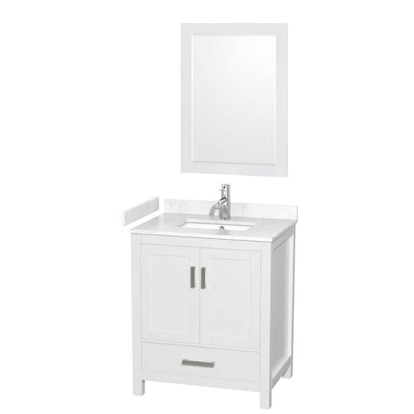 Sheffield 30 in. W x 22 in. D x 35.25 in. H Single Bath Vanity in White with Carrara Cultured Marble Top and 24" Mirror