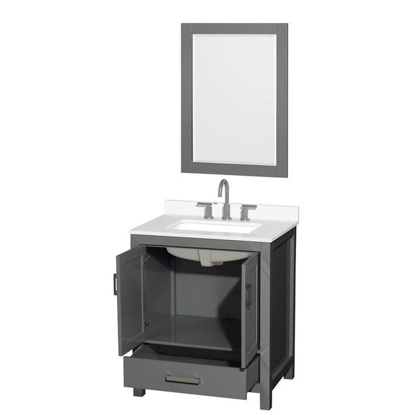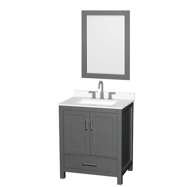 Sheffield 30 in. W x 22 in. D x 35 in. H Single Bath Vanity in Dark Gray with White Quartz Top and 24 in. Mirror