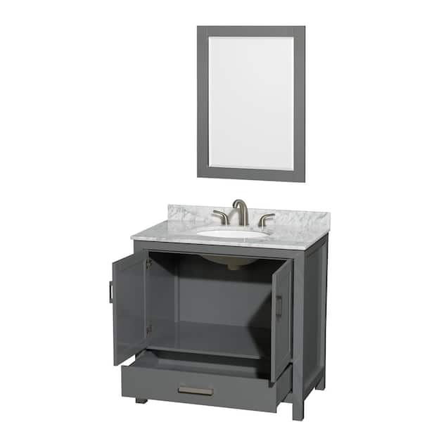 Sheffield 36 in. W x 22 in. D x 35 in. H Single Bath Vanity in Dark Gray with White Carrara Marble Top and 24" Mirror