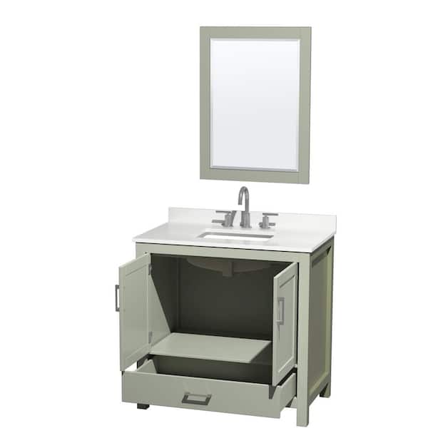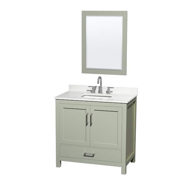Sheffield 36 in. W x 22 in. D x 35 in. H Single Bath Vanity in Light Green with White Quartz Top and 24 in. Mirror