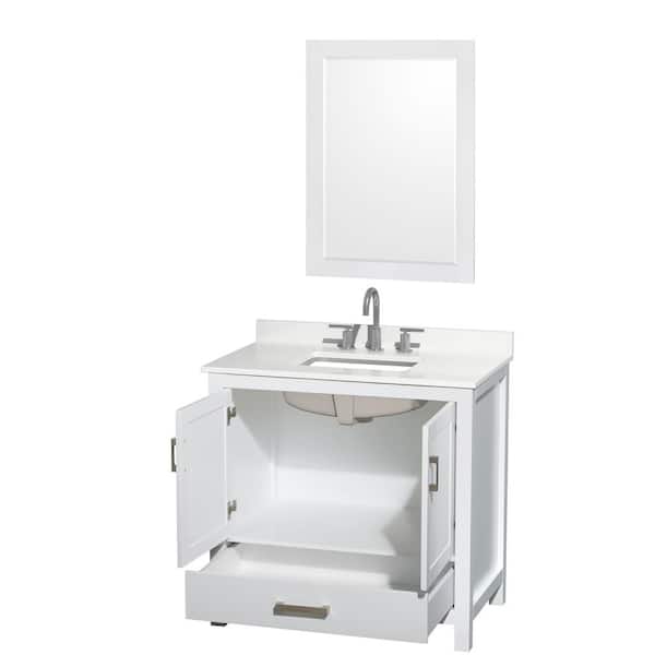 Sheffield 36 in. W x 22 in. D x 35 in. H Single Bath Vanity in White with White Quartz Top and 24 in. Mirror