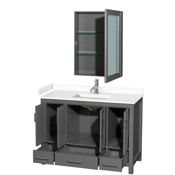 Sheffield 48 in. W x 22 in. D x 35 in. H Single Bath Vanity in Dark Gray with White Cultured Marble Top and MC Mirror
