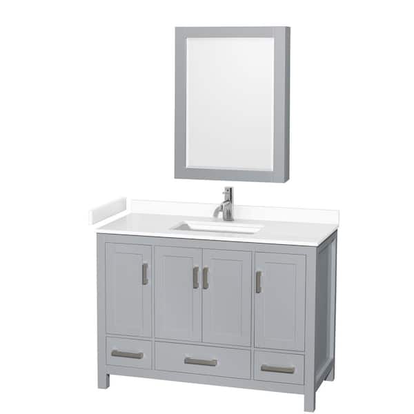 Sheffield 48 in. W x 22 in. D x 35 in. H Single Bath Vanity in Gray with White Cultured Marble Top and MC Mirror