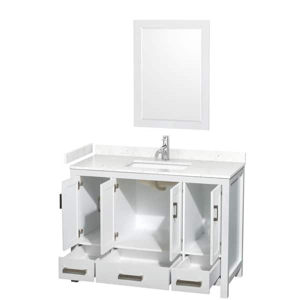 Sheffield 48 in. W x 22 in. D x 35 in. H Single Bath Vanity in White with Carrara Cultured Marble Top and 24" Mirror