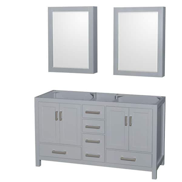 Sheffield 59 in. W x 21.5 in. D x 34.25 in. H Double Bath Vanity Cabinet without Top in Gray with MC Mirrors