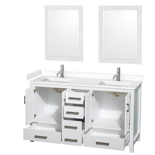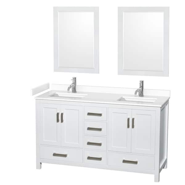 Sheffield 60 in. W x 22 in. D x 35 in. H Double Bath Vanity in White with White Cultured Marble Top and 24" Mirrors