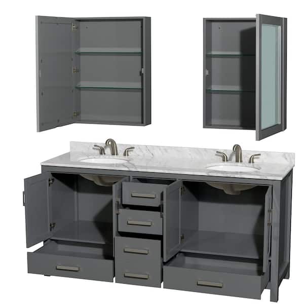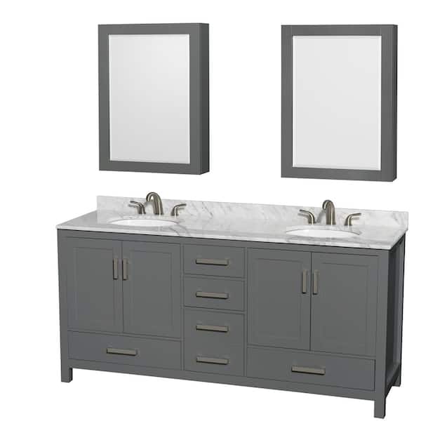 Sheffield 72 in. W x 22 in. D x 35 in. H Double Bath Vanity in Dark Gray with White Carrara Marble Top and MC Mirrors